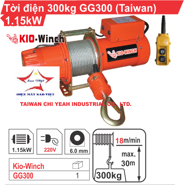 Tời nhanh Đài Loan Kio Winch GG-300 300kg